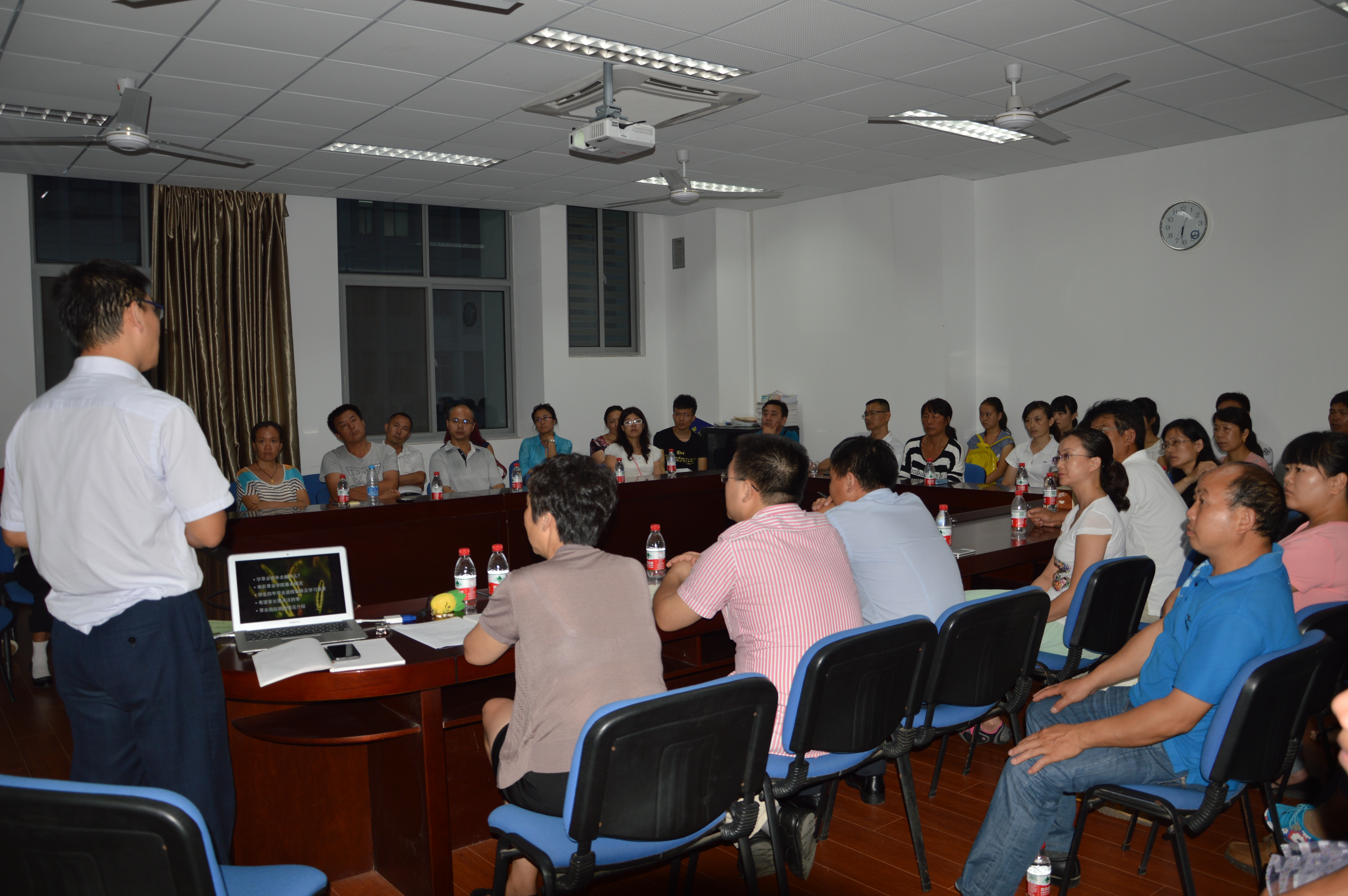 学院的领导、辅导员、班主任都参加了本次家长会,主要就学草业将来做什么、学院基本情况、学生四年学业进程安排及学习要求、希望家长要关注的以及草业国际班的情况介绍五个方面进行讨了论。