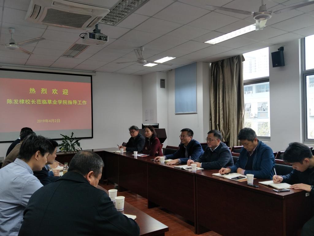 陈发棣校长在听取汇报后,对学院在成立不长的时间内取得的成绩给予了充分肯定,对学院全体师生作出的努力给予了高度赞扬,并对学院今后一段时期的工作提出了几点建议。一是要继续精心筹划,针对全国草业区域布局和产业瓶颈所在,提前介入并凝练学院的研究方向;二是要主动联系林草局,将自身特色优势与国家战略和地方政策对接,争取得到国家和各级政府的支持;三是注重人才培养,继续探索与罗格斯大学合作办学经验,形成学院自己的特色;四是草业社会服务空间很大,在西藏和句容已有一定的基础,要继续努力建设成特色基地。最后他表示,学校将会一如既往地支持麻豆视频