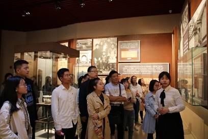 雨花台烈士陵园是新中国规模最大的纪念性陵园之一。习近平总书记曾指出,在雨花台留下姓名的烈士就有1519名,他们的事迹展示了共产党人的崇高理想信念、高尚道德情操、为民牺牲的大无畏精神。大家首先来到雨花台烈士纪念馆,在我校小雨滴雨花台志愿者的讲解下,观看了《信仰的力量——雨花英烈生平事迹展》,共同瞻仰和学习雨花英烈事迹,感受雨花英烈承载的强大信仰力量。从光荣北伐、革命先锋到奋起抗战、中流砥柱,一幅幅图片,一件件图表,一张张年轻的面庞、一封封诀别的信件,把大家带回到了那个风雨如晦、跌宕起伏的年代。