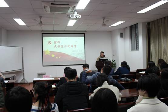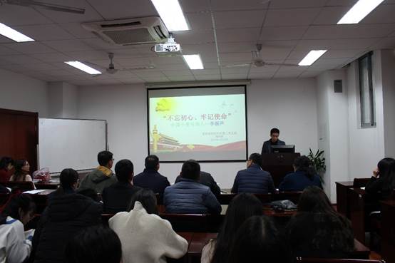 研究生第一党支部的张敬老师,以中国共产党入党誓词的历史变迁为主题,分别比较了土地革命时期、抗日战争时期、解放战争时期以及中共十二大之后的入党誓词的变化。他总结“纵观整个历史时期的入党誓词,永不叛党对党忠诚是永恒的内容,不变的是为共产主义奋斗终身,每一党员必须牢记誓词,恪守职责。”