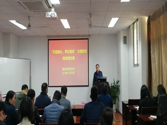 微党课竞赛活动于11月28日下午4点在理科南楼F304开展,此次活动旨在深入开展“不忘初心、牢记使命”主题教育工作,持续推进“两学一做”学习教育,落实“三会一课”基本制度,引导和激励全体党员坚定理想信念、锤炼党性修养、牢固宗旨意识,立足岗位做贡献,扎实推进学习型基层党组织建设。