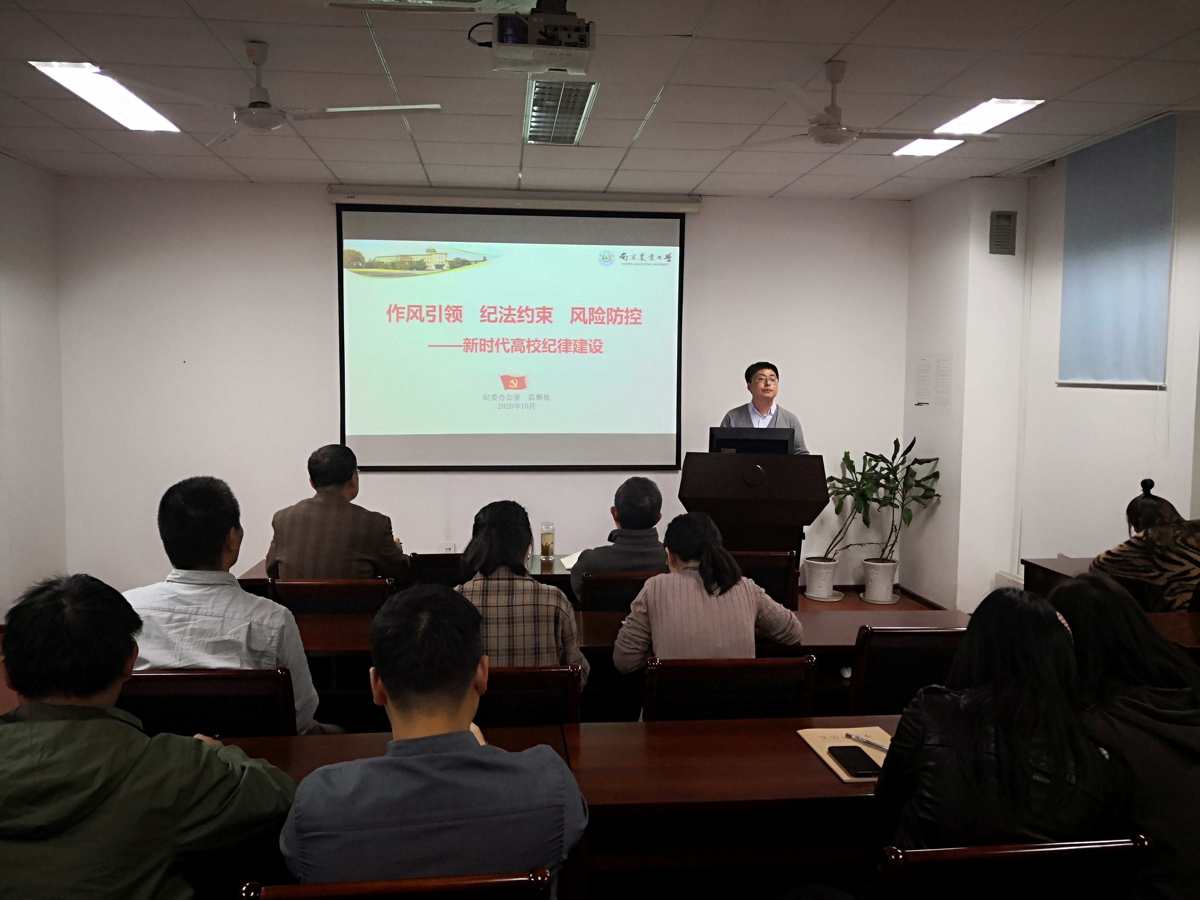 在理科南楼院会议室F304举办了纪法教育与作风建设专题学习报告会。报告会特邀校纪委办公室、监察处副处长梁立宽主讲,麻豆视频