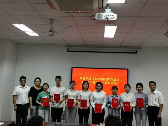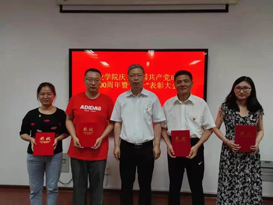 会议现场对2个优秀基层党组织,12名优秀共产党员,2位优秀党务工作者进行表彰,党总支书记李俊龙、党总支副书记副院长高务龙、党总支委员邵涛、迟英俊、胡健等分别向获奖者颁发荣誉证书。