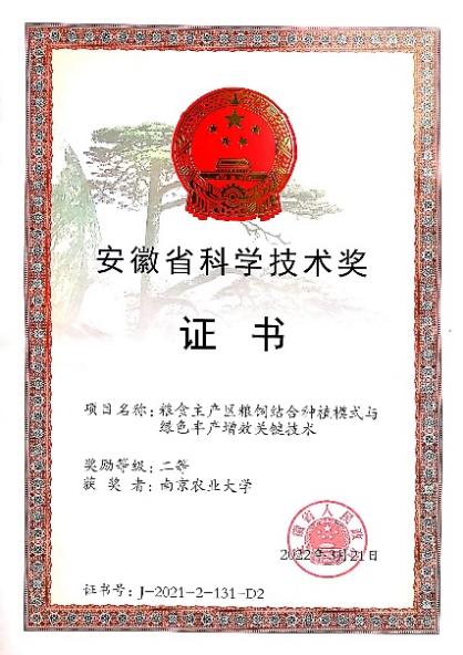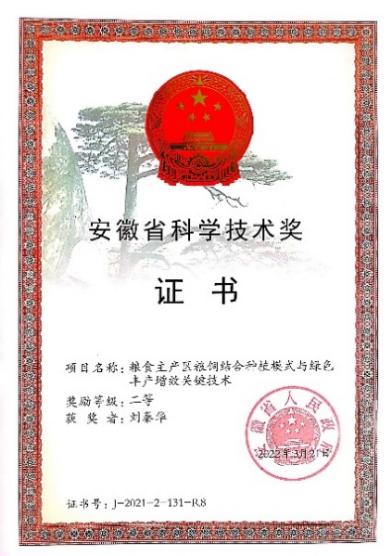 由我院邵涛教授、刘秦华副教授参加、南京农业大学为第二完成单位的研究成果“粮食主产区粮饲结合种植模式与绿色丰产增效关键技术”获得安徽省科学技术奖二等奖。