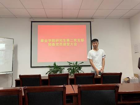 研究生第二党支部在理科南楼F304召开预备党员接收大会。研究生第二党支部全体党员及发展对象毕馨颖、孙雨参与了此次会议,会议由党支部书记原现军同志主持。