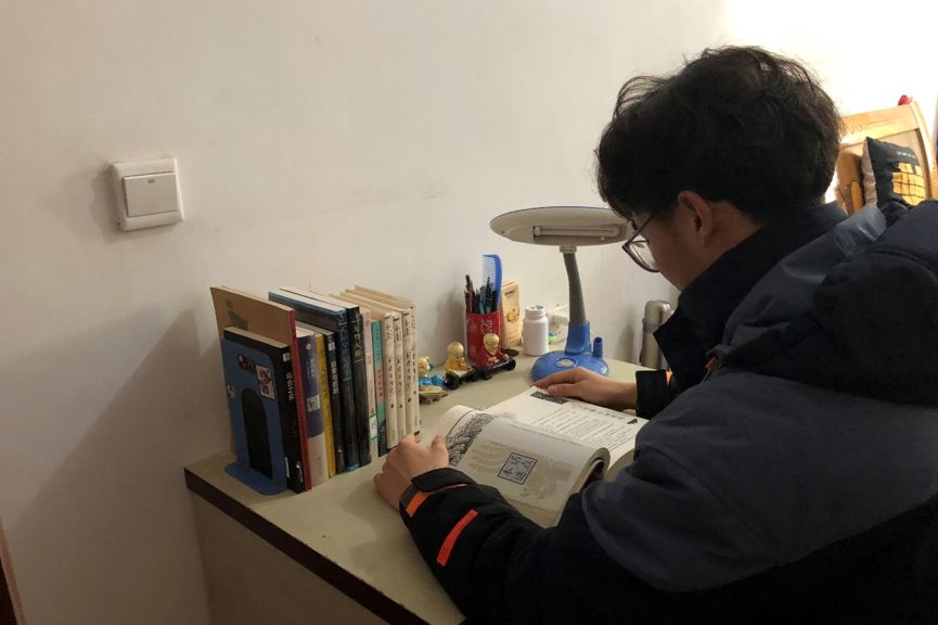 党员钟友辉打开书本。虽然已经保研到了厦门大学,他一刻也没有停下学习的脚步,为了弥补英语方面的不足,提升英语词汇量和阅读能力,这个寒假,他为自己制定了详细的学习计划。