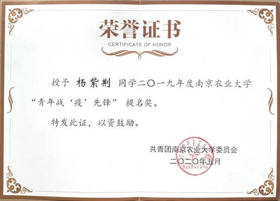 即使有对感染新冠肺炎的担忧,也有遇到一些难沟通的、性格较暴躁的群众不配合工作,但在我们的劝说和努力下,冲突都得到了化解。于我而言,这次志愿不光是作为党员义不容辞的义务,也是一次社会经验的积累,在我成为正式党员的第一年中成为一份珍贵的回忆,我也很荣幸因此收获了学校的肯定。