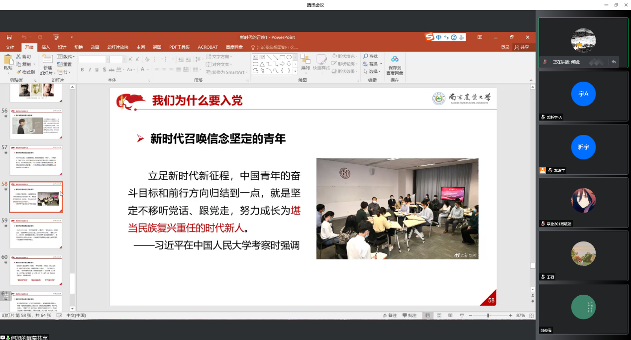 党总支举办了本学期第一次线上专题党课。本次党课邀请了南京农业大学党委组织部组织员何旭老师主讲,麻豆视频