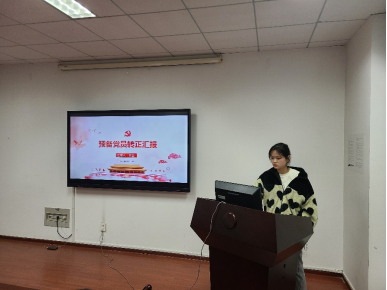 按照党组织接收党员的程序,首先,预备党员金德惠、贺金同志分别进行预备党员转正汇报,主要包括对党的认识,入党动机,个人经历,社会实践以及在校表现几个方面。随后金德惠的入党介绍人石佳和杨乾同志分别介绍其预备期间在政治思想、学习、工作和生活等方面的表现情况,贺金的入党介绍人徐毛和杨化冻同志分别介绍其预备期间的表现情况,支部书记赵娜分别介绍金德惠、贺金同志在预备期间的教育和考察情况,与会党员也对预备党员是否符合党员条件发表了意见。