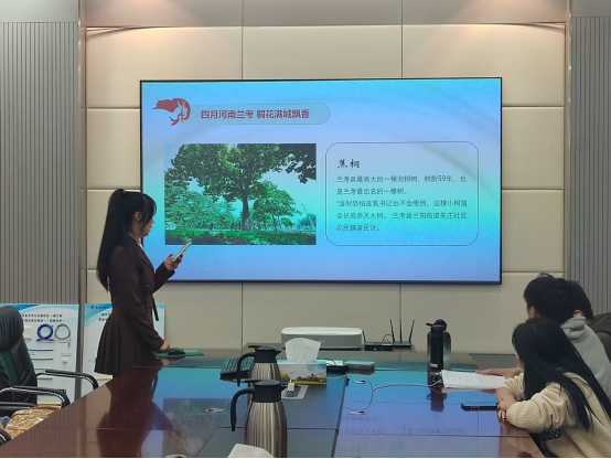 张子怡同志以《人民的好干部——焦裕禄》为主题进行了讲解。从介绍兰考县最高大的一棵树龄59年的泡桐树开始讲述党员焦裕禄的故事。