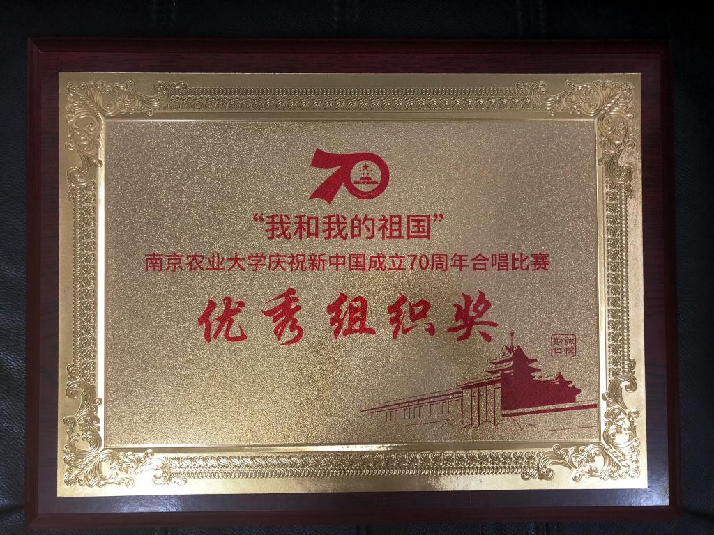 与马克思主义学院联队现场表现优异,获得南京农业大学“我和我的祖国”合唱大赛二等奖及优秀组织奖。