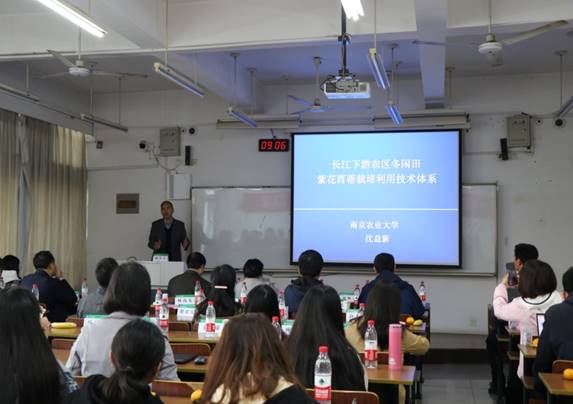 报告的内容为特邀报告加专题报告的形式。其中,在11月9日下午,我院副教授徐彬进行了题为“抑制黑麦草叶片衰老的遗传因子探秘”的报告。在11 月 10 日上午,我院教授杨志民以及教授沈益新,师资博士后张敬分别进行了题为“华东地区草种质资源收集与利用”,“冬闲田紫花苜蓿栽培技术体系”以及“乙酸化修饰调控多年生黑麦草抗旱机制初探”报告。引起了与会人员的热烈探讨。