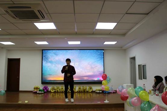 主持人姚佳明同学宣布联欢晚会主题并欢迎到场同学。