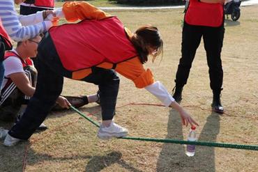 在雷区取瓶项目里,为了拿到雷区里的瓶子,大家各展身手,齐心协力,想出了十几种不同取瓶子的方式,囧态百出的同时也是欢乐无穷。