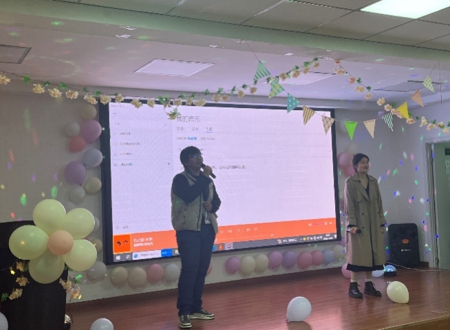 待歌舞完毕,我们进行了第二场游戏:把我唱给你听,搭档们的手用红绳绑在一起,听取随机歌曲片段,听到主持人口令后,搭档们一起抢夺话筒。在热烈而温暖的歌曲的渲染之下,现场舞会氛围变得十分轻松,气氛很活跃,大家也全神贯注,为成为“K歌之王”而努力!
