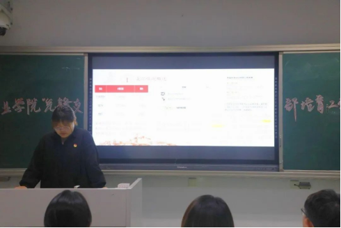 范亚菁同学汇报的主题是“学思想研学术,乘时代之风,成民族先锋”,汇报的内容从支部情况概述、工作完成情况,工作不足之处三个方面,对草业202团支部 上一学年的工作进行总结。丰富的主题团日活动不断加深同学们的思想认识,浓厚的科研学术氛围指引同学们节节攀升。