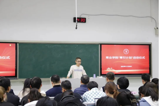 秦正睿老师代表全体导师发言,他从传道,授业,解惑三方面阐述了对教师使命的理解,要在工作中向学生传学农、知农、爱农、兴农之道,授学业、科研之业,解草业认知偏差之惑的决心,鼓励学生积极投身草学事业,在相关领域内有所贡献。