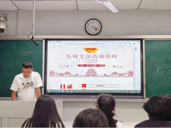 于主楼221教室组织开展“先锋支部培育工程”的结项答辩。